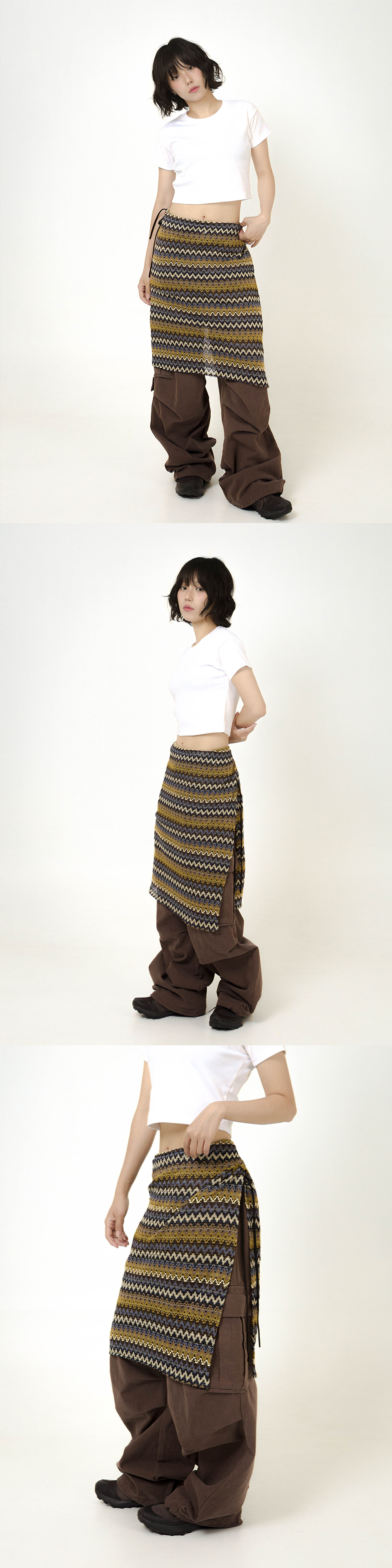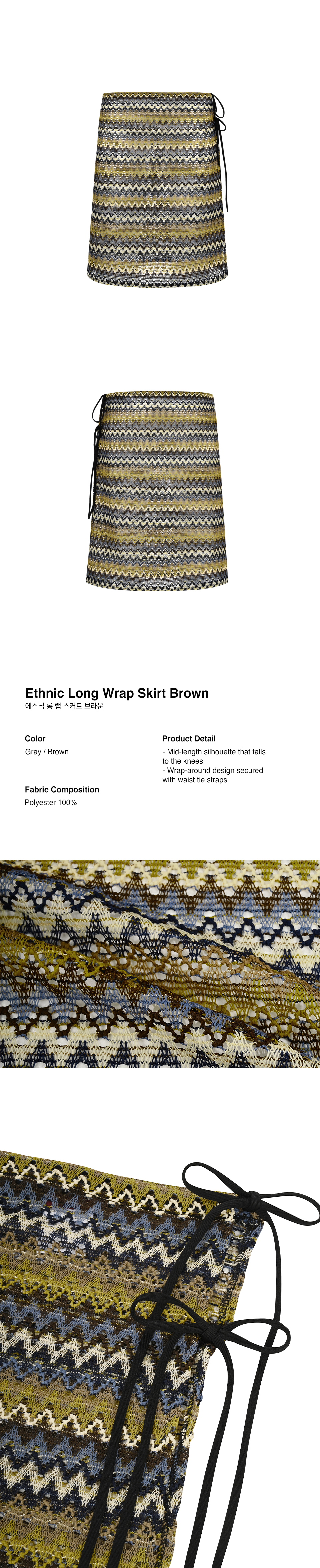 Ethnic Long Wrap Skirt Brown