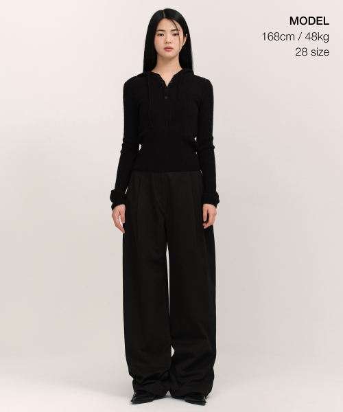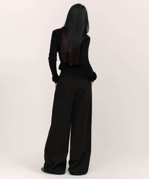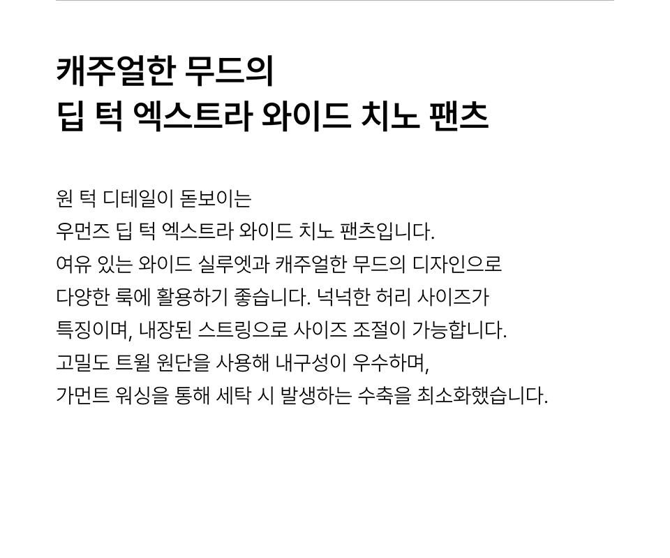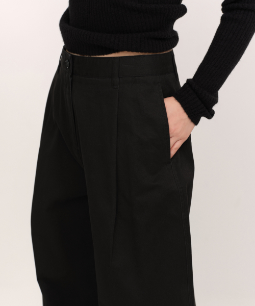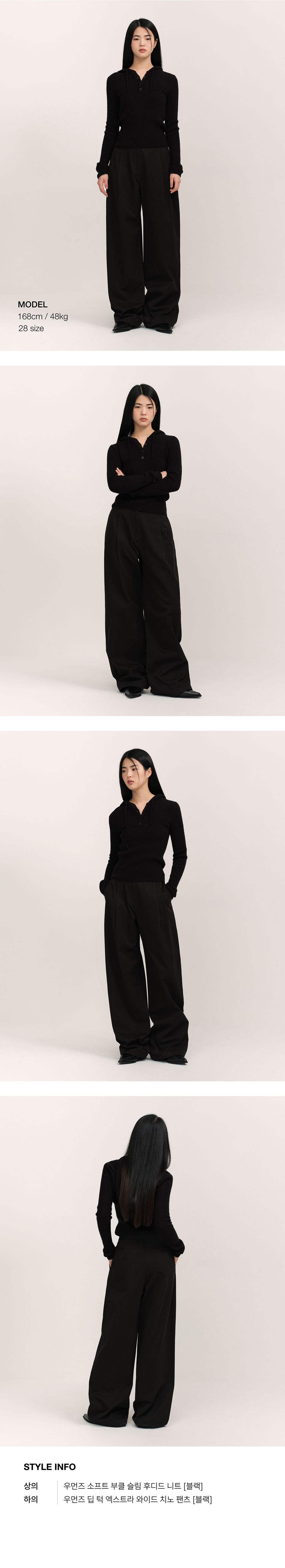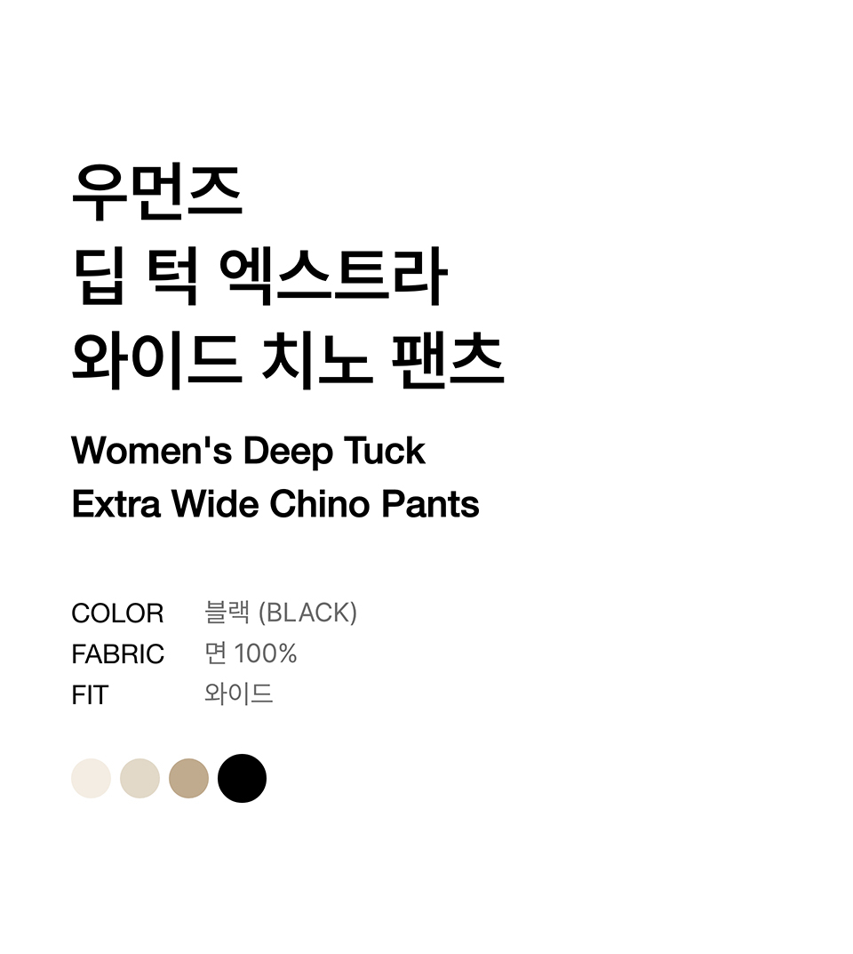 우먼즈 딥 턱 엑스트라 와이드 치노 팬츠 [블랙]