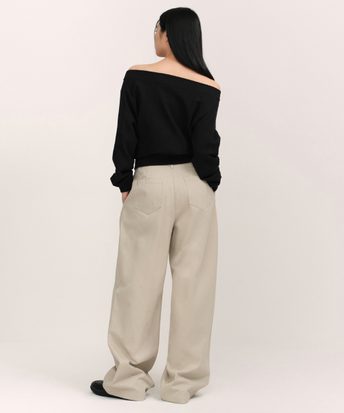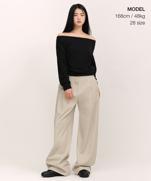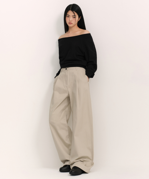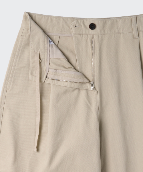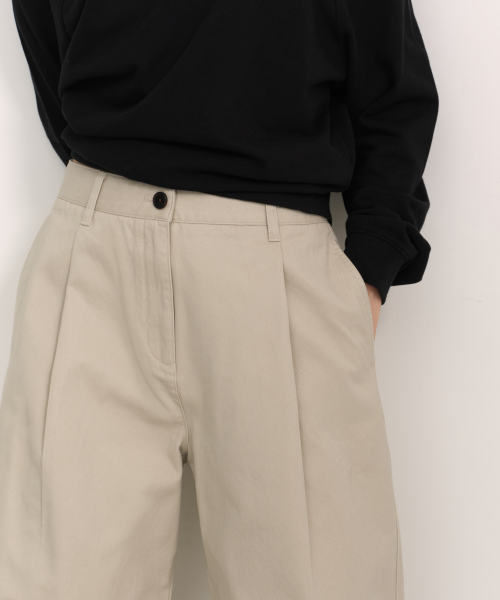 우먼즈 워시드 코튼 딥 턱 와이드 팬츠 [카키 베이지]