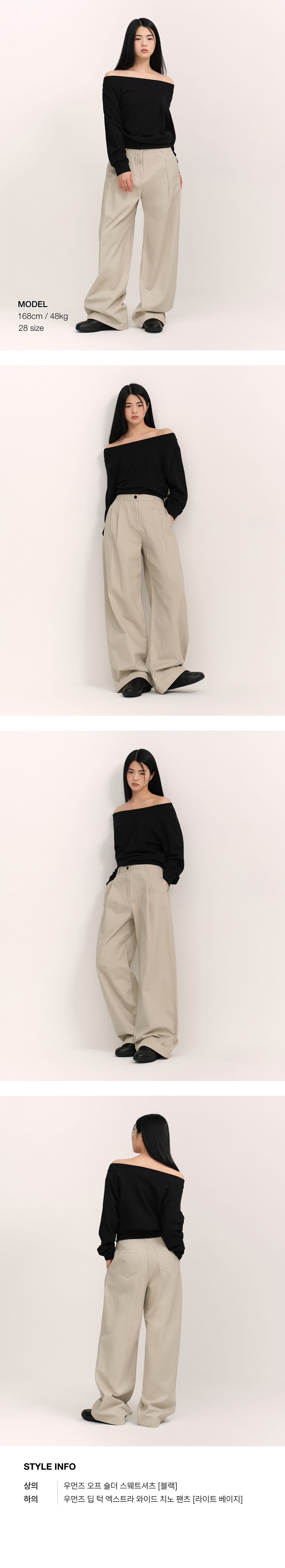 우먼즈 딥 턱 엑스트라 와이드 치노 팬츠 [블랙]