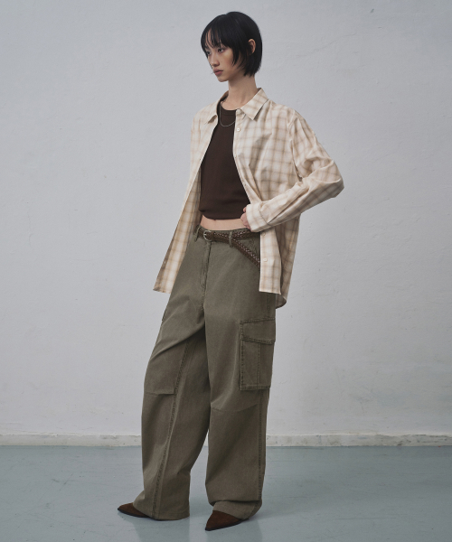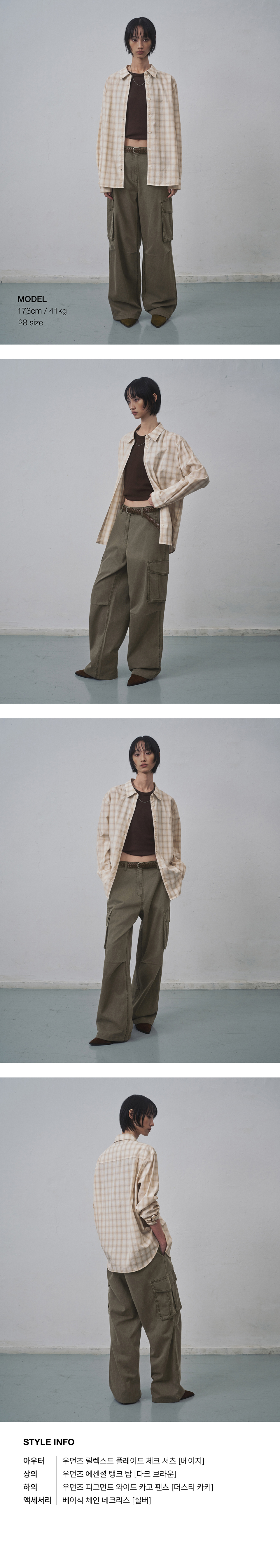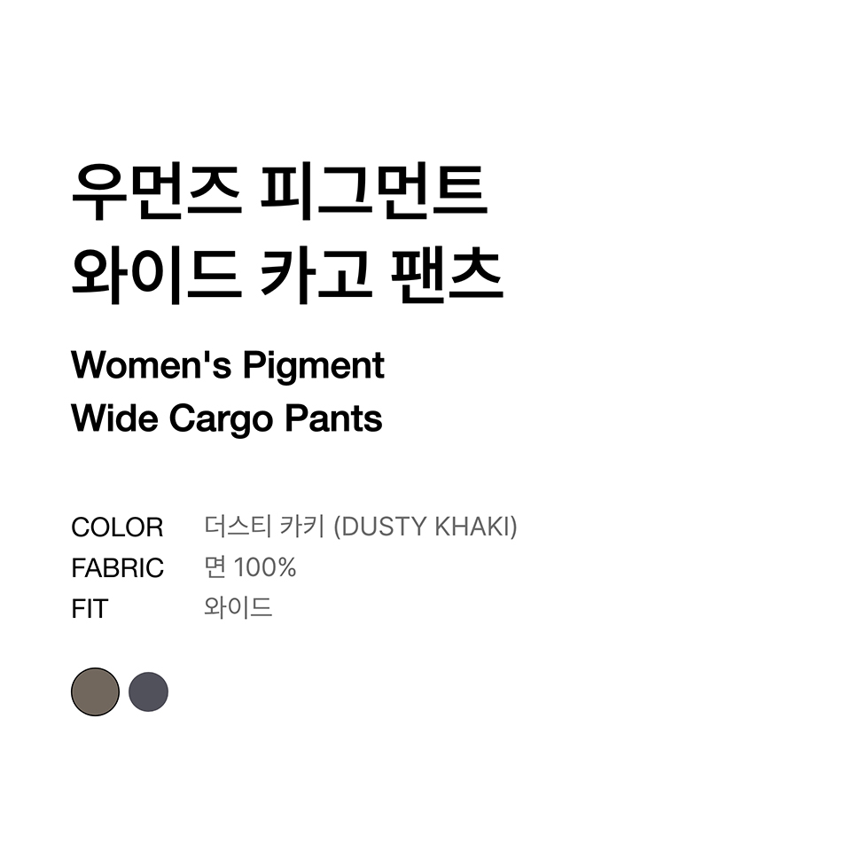 우먼즈 피그먼트 와이드 카고 팬츠 [더스티 카키]
