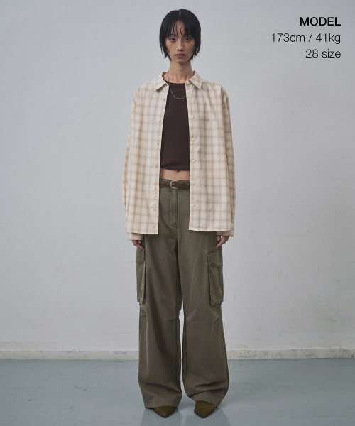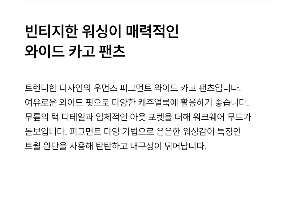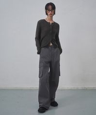 우먼즈 피그먼트 와이드 카고 팬츠 [차콜 그레이]
