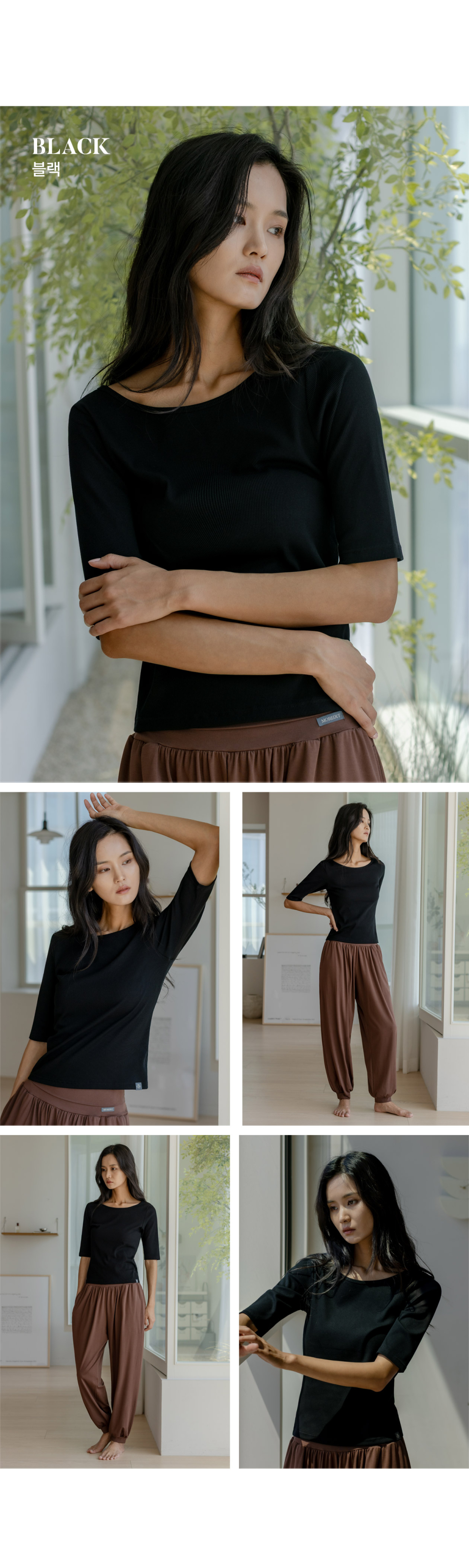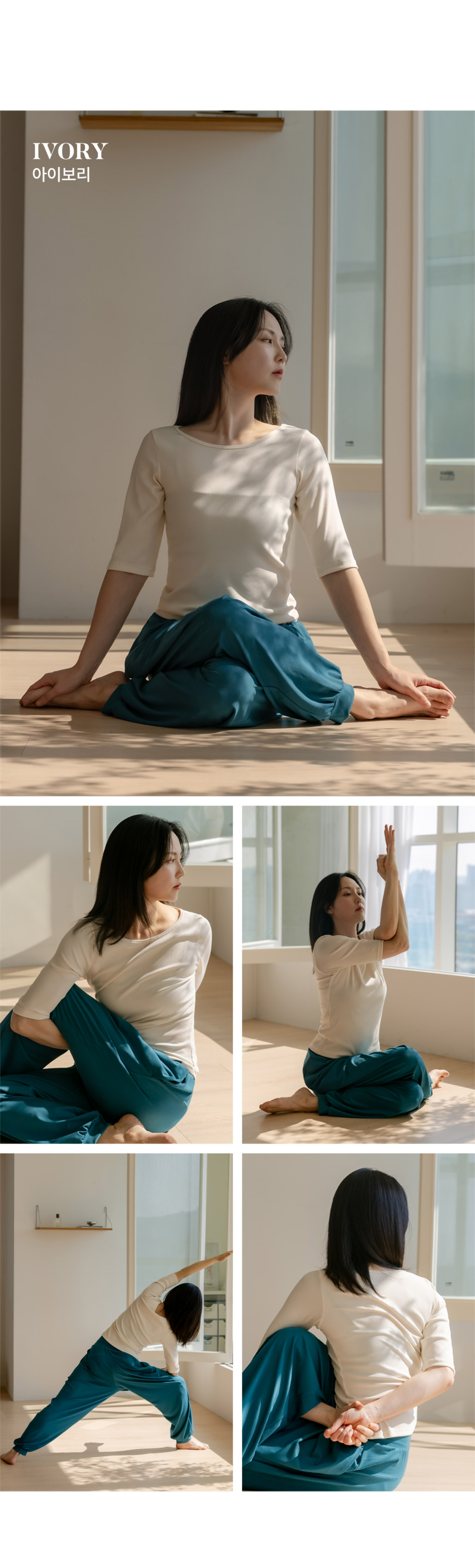 * 요가 팬츠, 슬랙스, 와이드 팬츠 등 어떤 하의와도 매칭 쉬운 베이직 탑