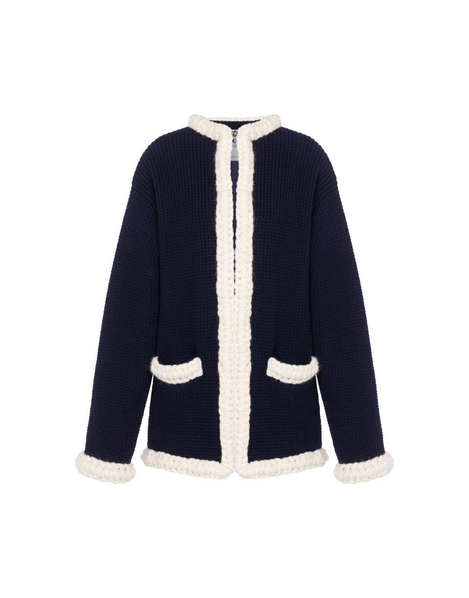 멀티 카라 배색 울 가디건