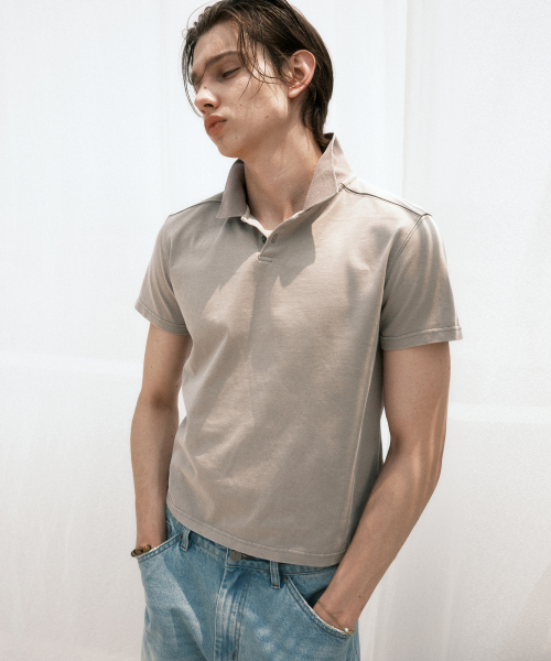 피그먼트 크롭 폴로 티셔츠 (베이지)
