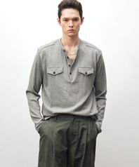 리브드 헨리넥 롱 슬리브 티셔츠 (그레이)