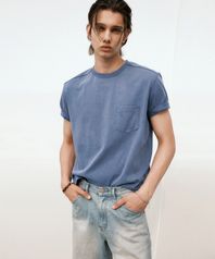 코튼 피그먼트 포켓 티셔츠 (블루)