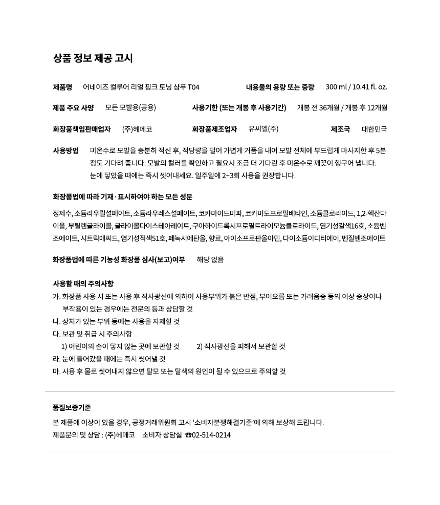컬루어 리얼 핑크 토닝 샴푸 T04