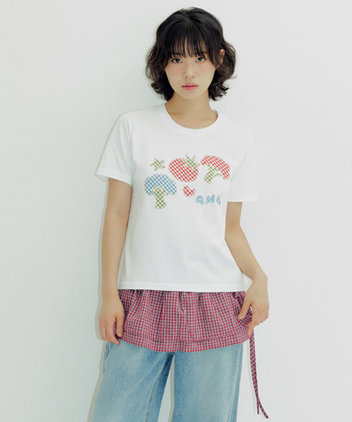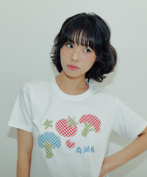 Tomato Broccoli Duo Patch 체크 패치 반팔 티셔츠 AS1224 (화이트)