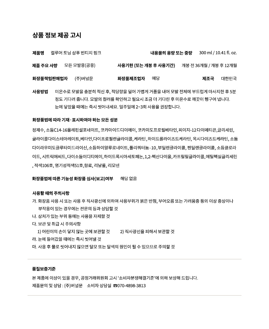 컬루어 빈티지 핑크 토닝 샴푸