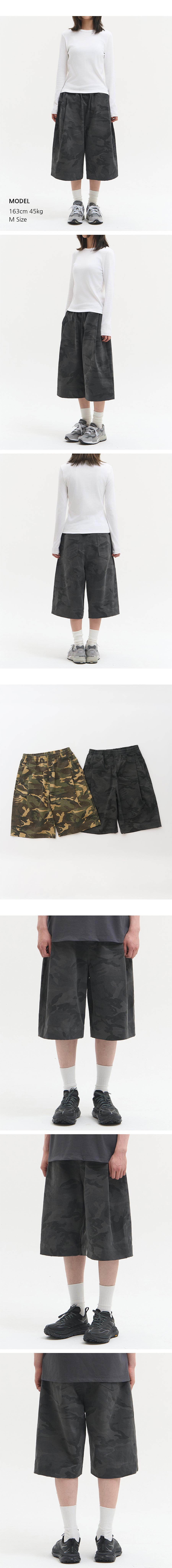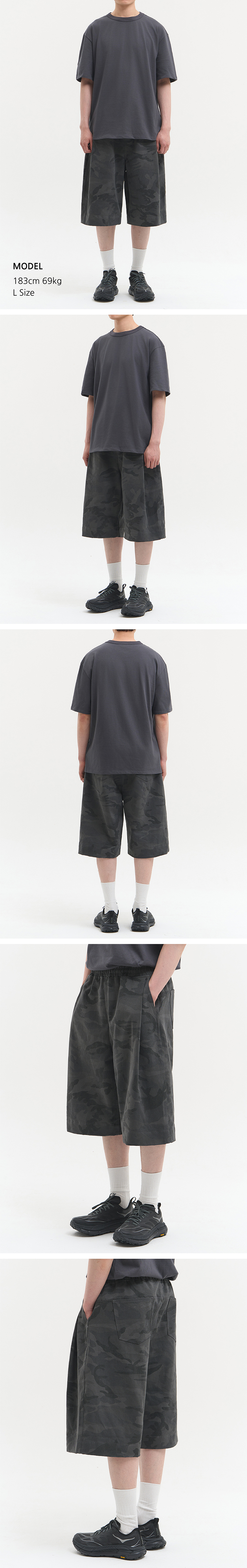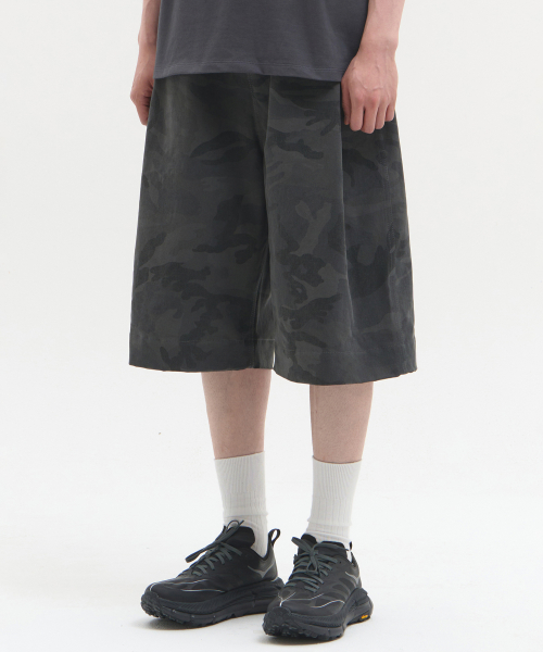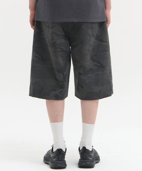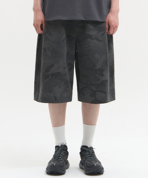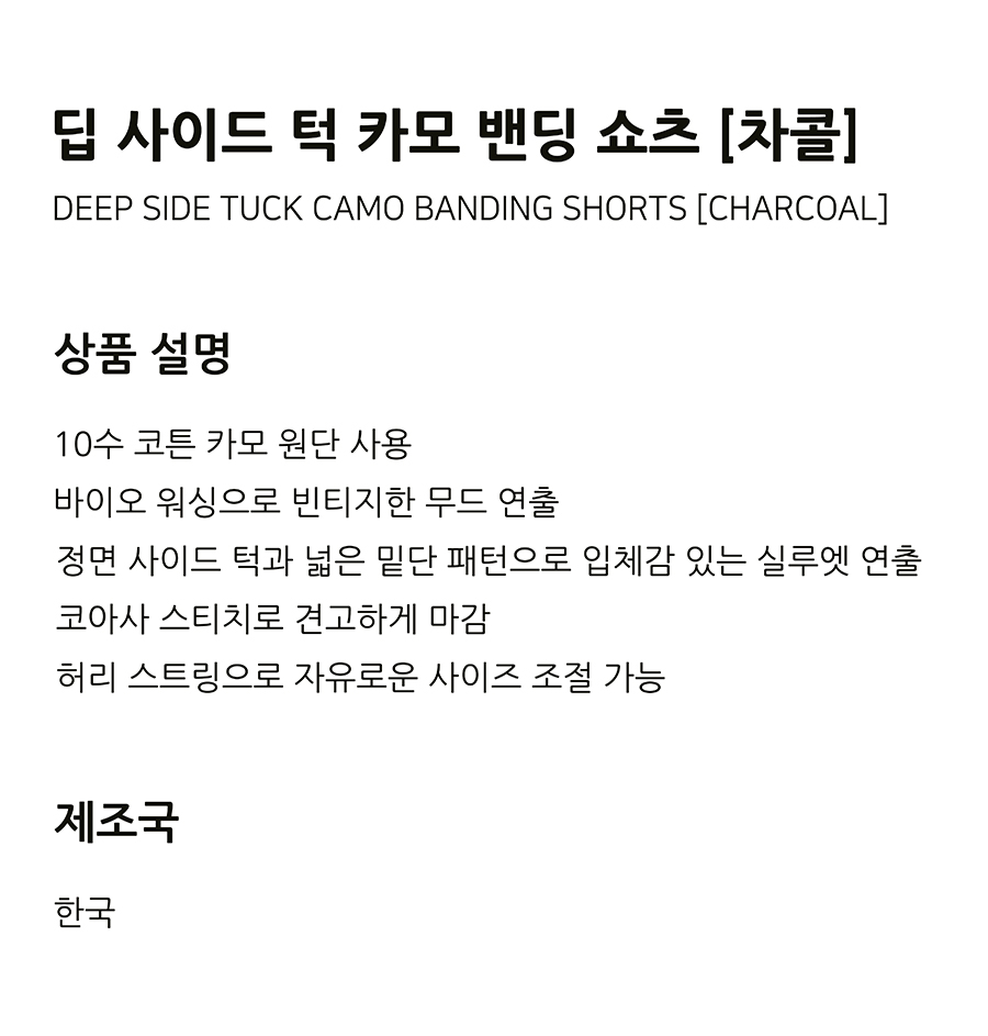 딥 사이드 턱 카모 밴딩 쇼츠 [차콜]