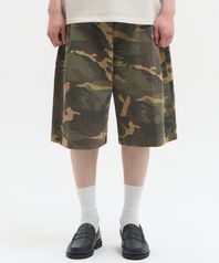 딥 사이드 턱 카모 밴딩 쇼츠 [베이지]