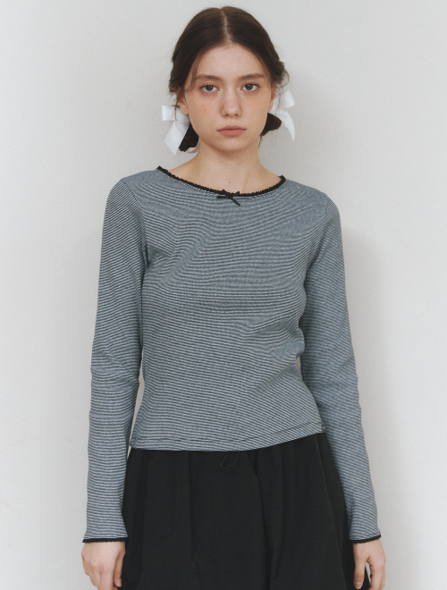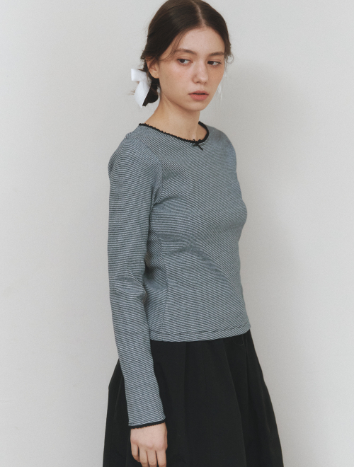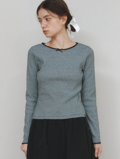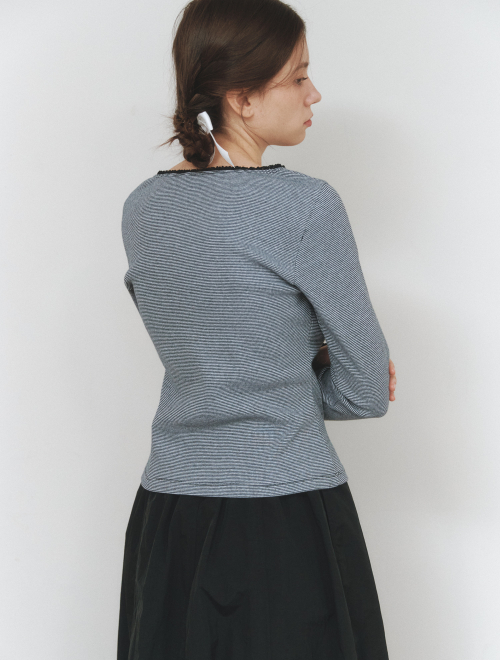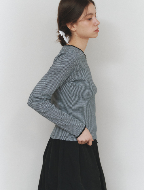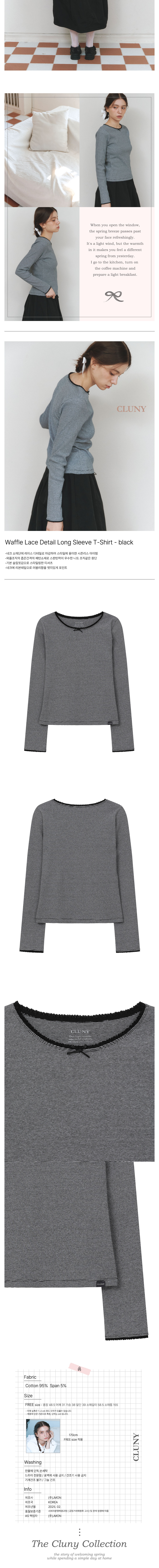 Waffle Lace Detail Long Sleeve T-Shirt - black