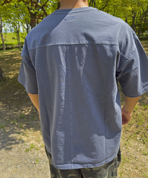 Edition7. 탄탄 디스트로이드 오버핏 반팔티 (딥네이비)