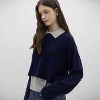 WD_Collar knit and top set_NAVY