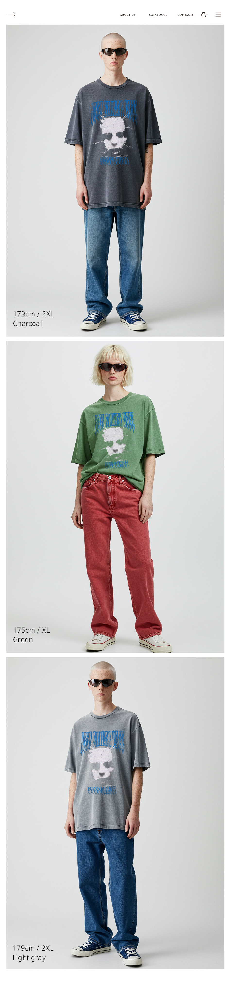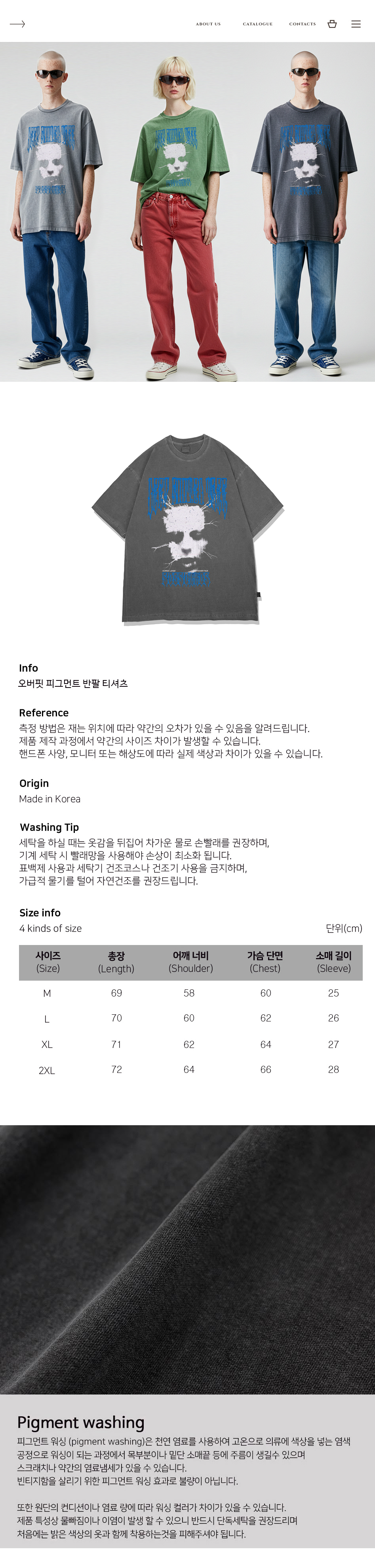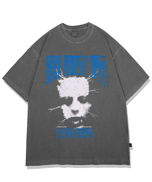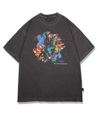 DTG 괴수 피그먼트 오버핏 반팔티셔츠 네이비