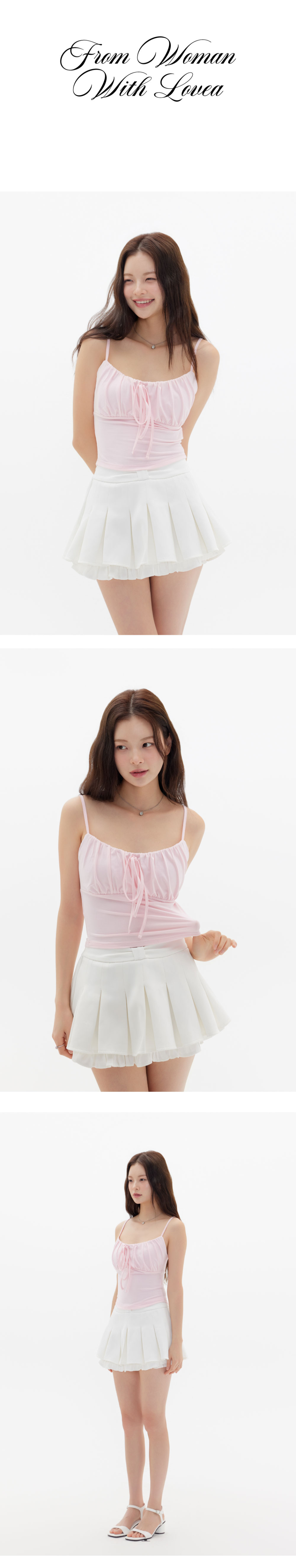 캡 내장 리본 끈 나시 - 핑크