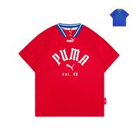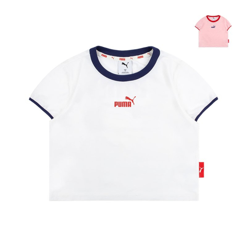 걸 크롭 기장의 디자인으로 가슴 중앙에 캣 로고와 등에 푸마 그래픽으로 장식한 푸마 여아 링거 반팔티입니다.