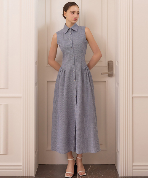 25HS 칼라120 떼루아라인 퀸롱 트위드원피스 스카이블루