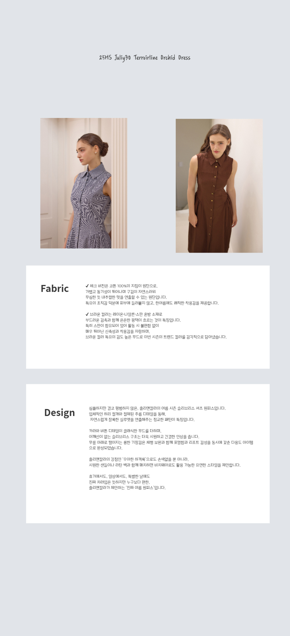 쥴리앤칼라(JULIY&CALLA)는 옷을 오랫동안 간직할 수 있는 보석 같은 가치로 바라봅니다. 차별화된 디자인과 뛰어난 퀄리티를 통해, 매 순간 특별한 자신감을 선사합니다. 입는 보석이라는 컨셉으로, 세상에 단 하나뿐인 원피스를 디자인하는 디자이너 브랜드입니다.