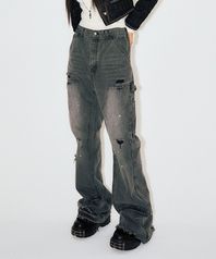 DOUBLE KNEE BOOT CUT JEANS GREY