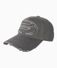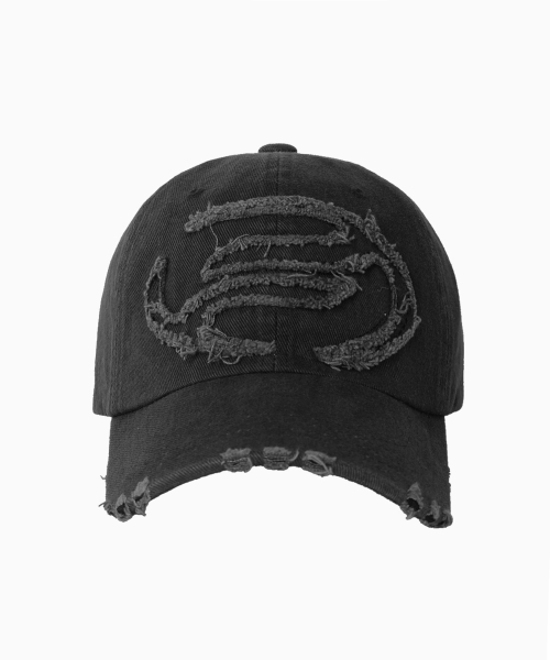 아플리케 데미지드 볼캡 [차콜]