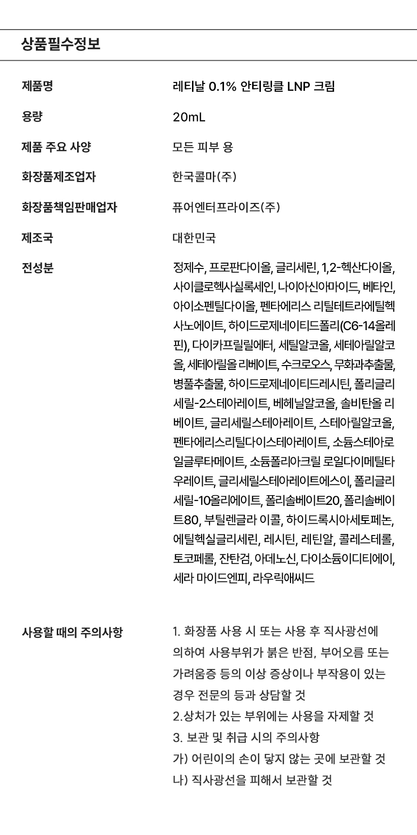 레티날 0.1% 안티링클 LNP 크림