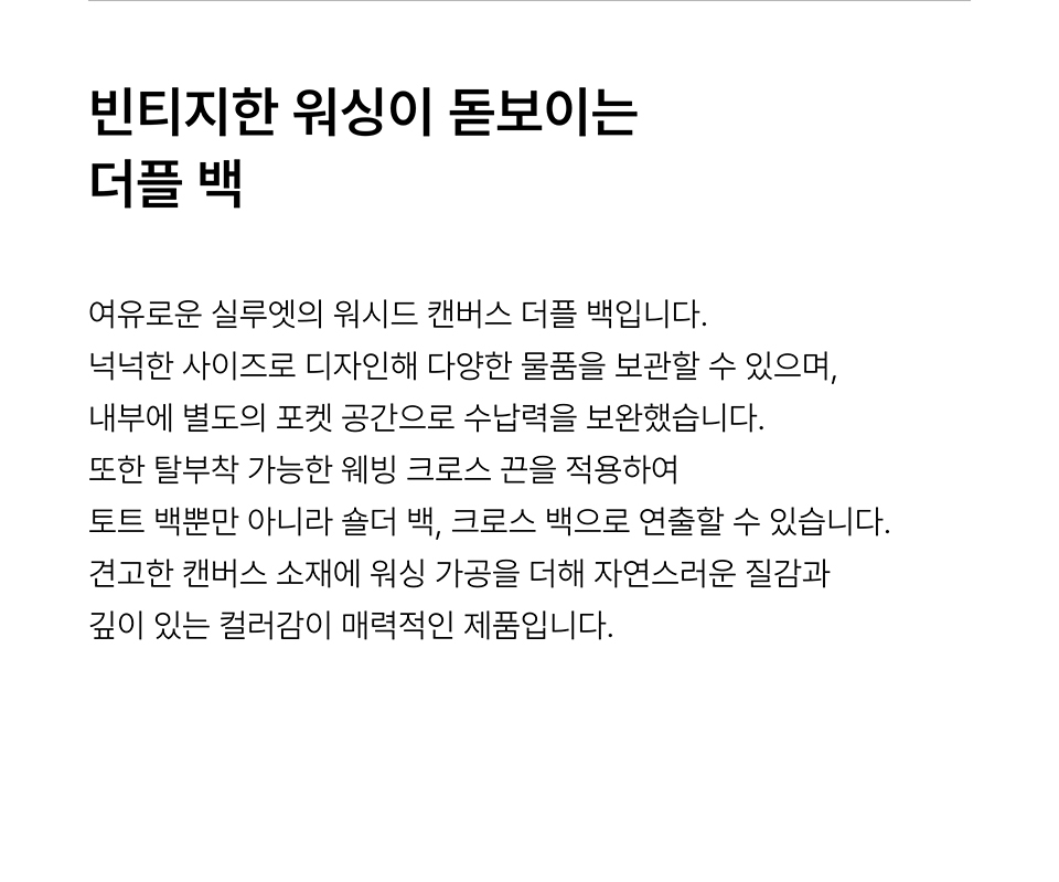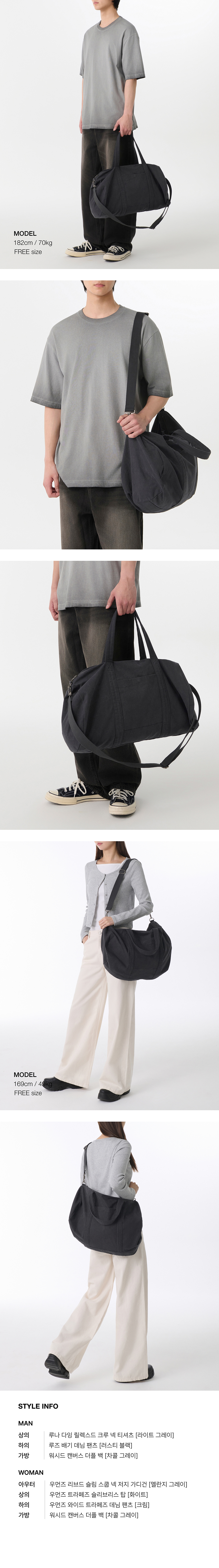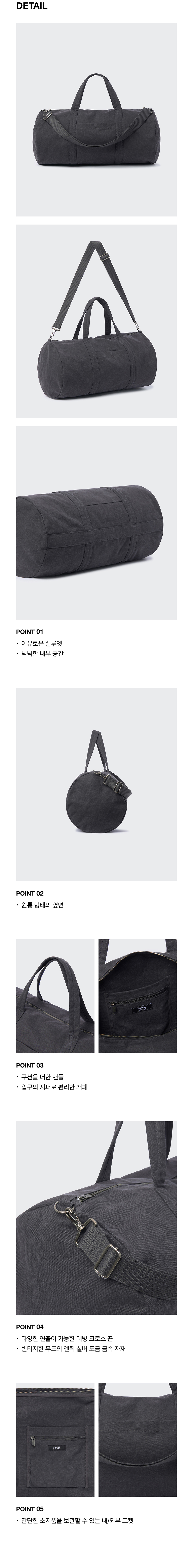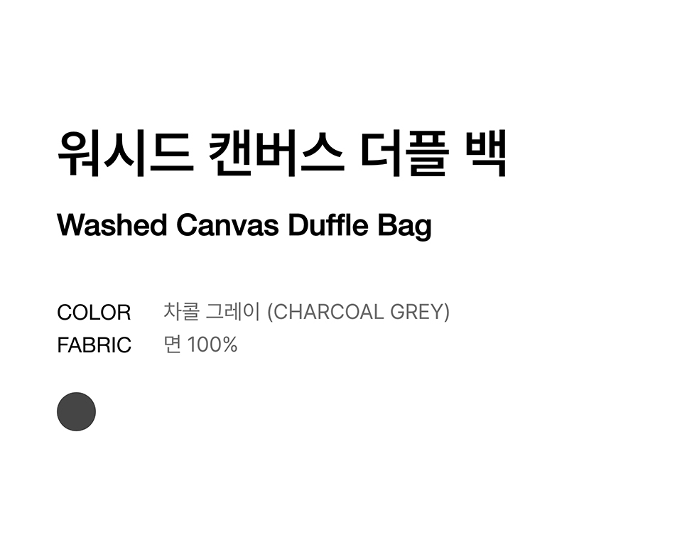 워시드 캔버스 더플 백 [차콜 그레이]