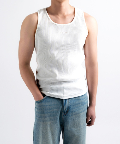 릴렉스드 리브드 로고 슬리브리스 화이트