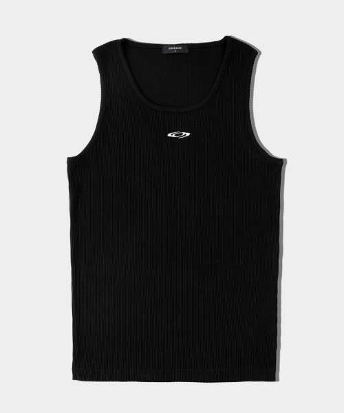 릴렉스드 리브드 로고 슬리브리스 블랙