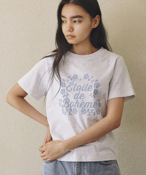 보헤미안 스타 그래픽 티셔츠 [화이트 멜란지]