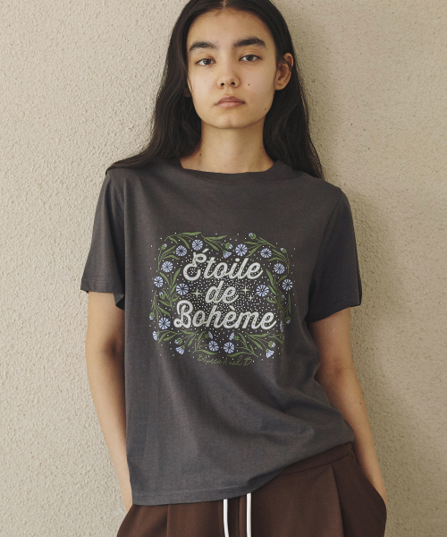 플로럴 그래픽 모달 티셔츠 [차콜]