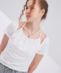셔링 홀터넥 티셔츠 [화이트]