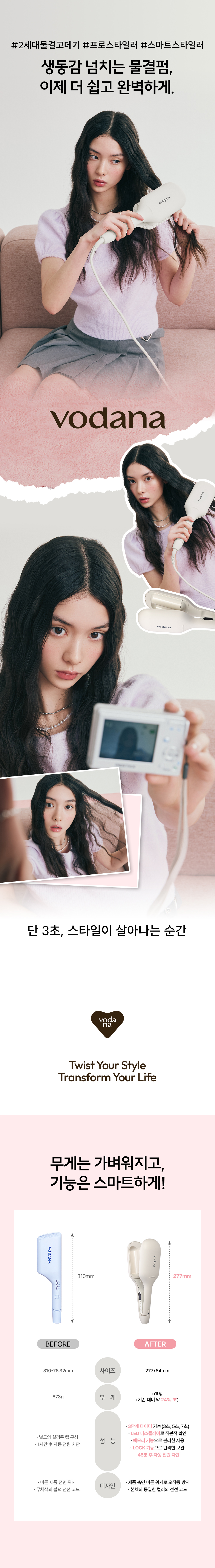 보다나(VODANA)는 '스타일의 경계를 넘어, 새로운 나를 보다'라는 슬로건으로, 단순히 아름다운 스타일을 만드는 데 그치지 않는 브랜드입니다. 고객이 스스로 새롭게 발견하고, 자신만의 이야기를 써 내려갈 수 있도록 돕습니다. 작은 트위스트로 시작된 변화는 삶 전체를 바꾸는 터닝포인트가 될 것입니다.