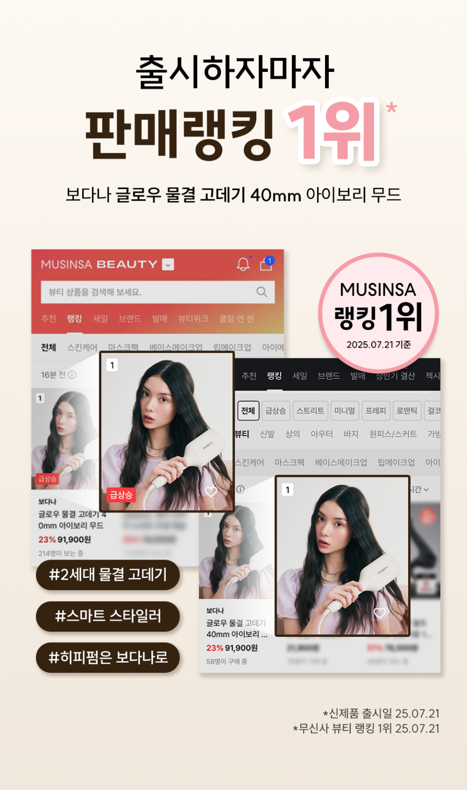 글로우 물결 고데기 40mm 아이보리 무드