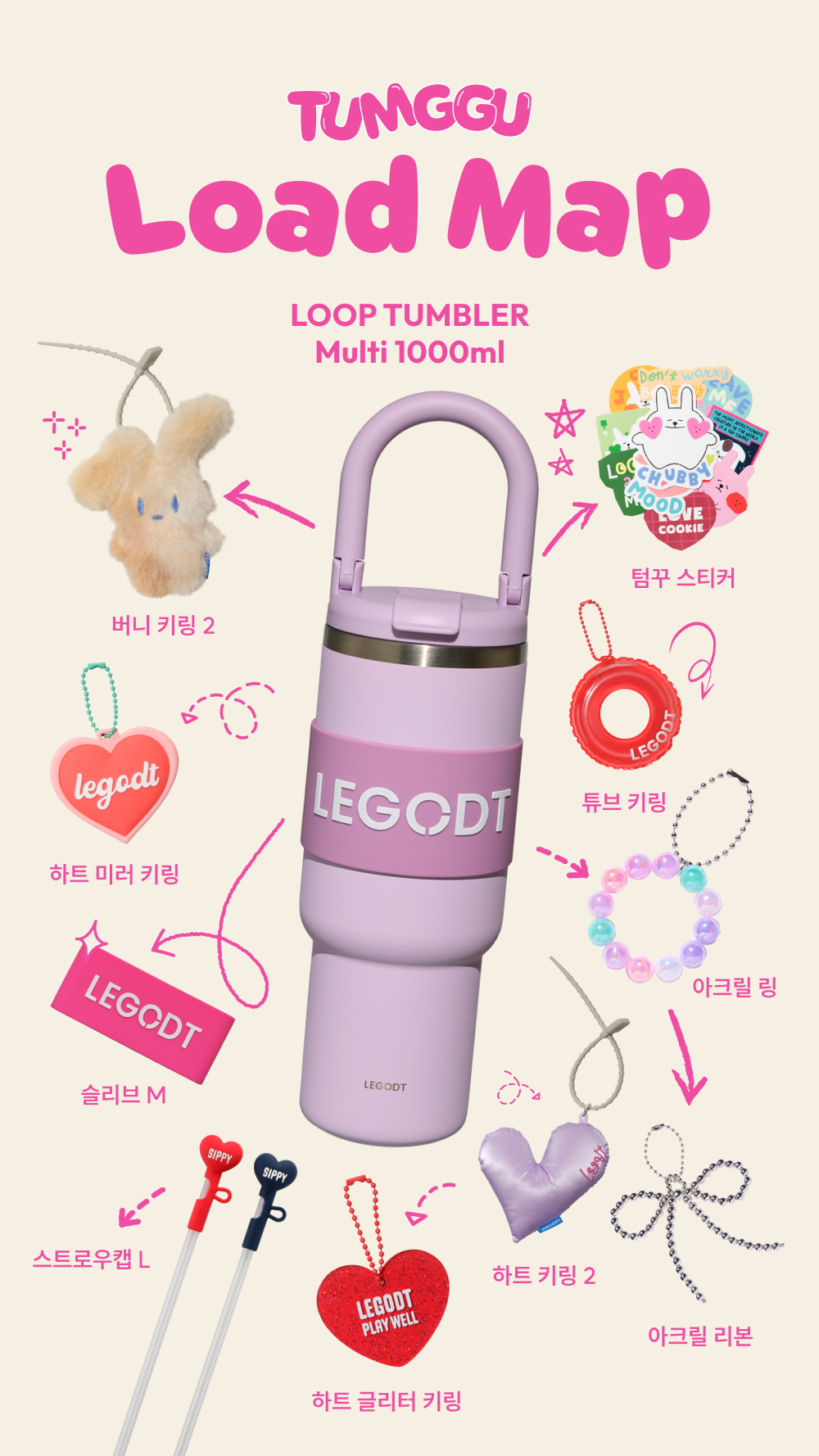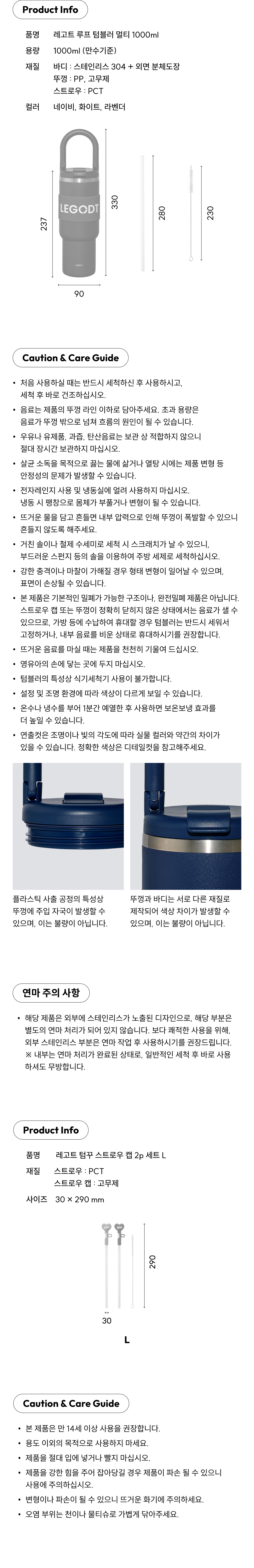 루프 텀블러 멀티 1000ml 텀꾸 세트 (텀블러+스트로우 캡 2p세트)
