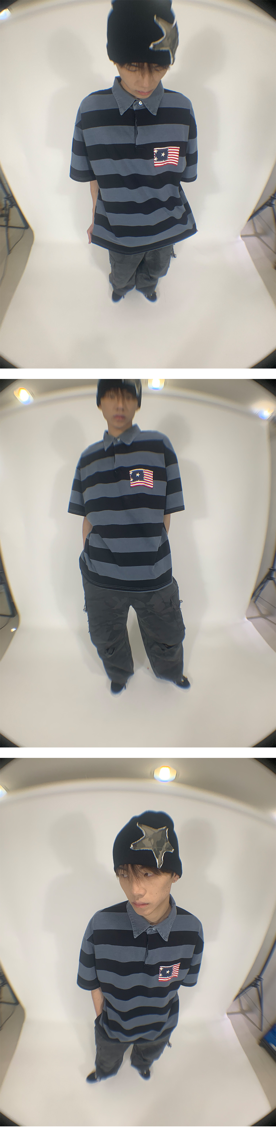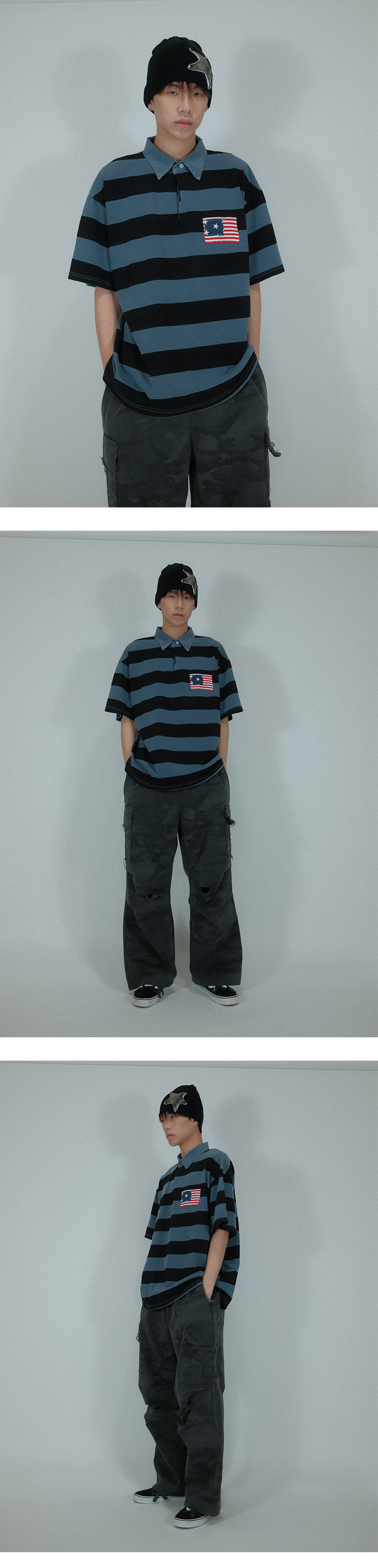 Stars & Stripes Pigment Rugby Shirt ((d/blue*black))