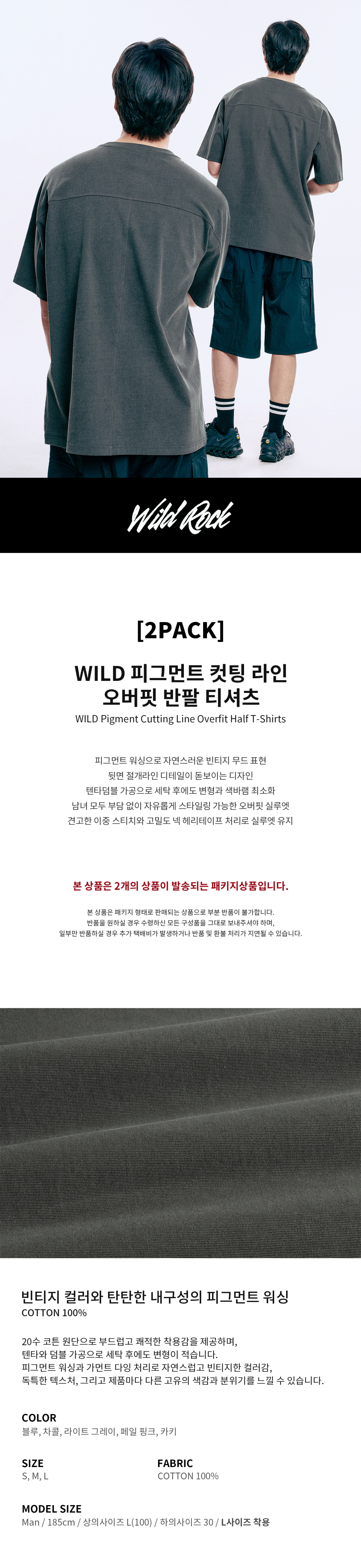 [2PACK] WILD 베이직 피그먼트 절개 반팔 티셔츠_5 COL