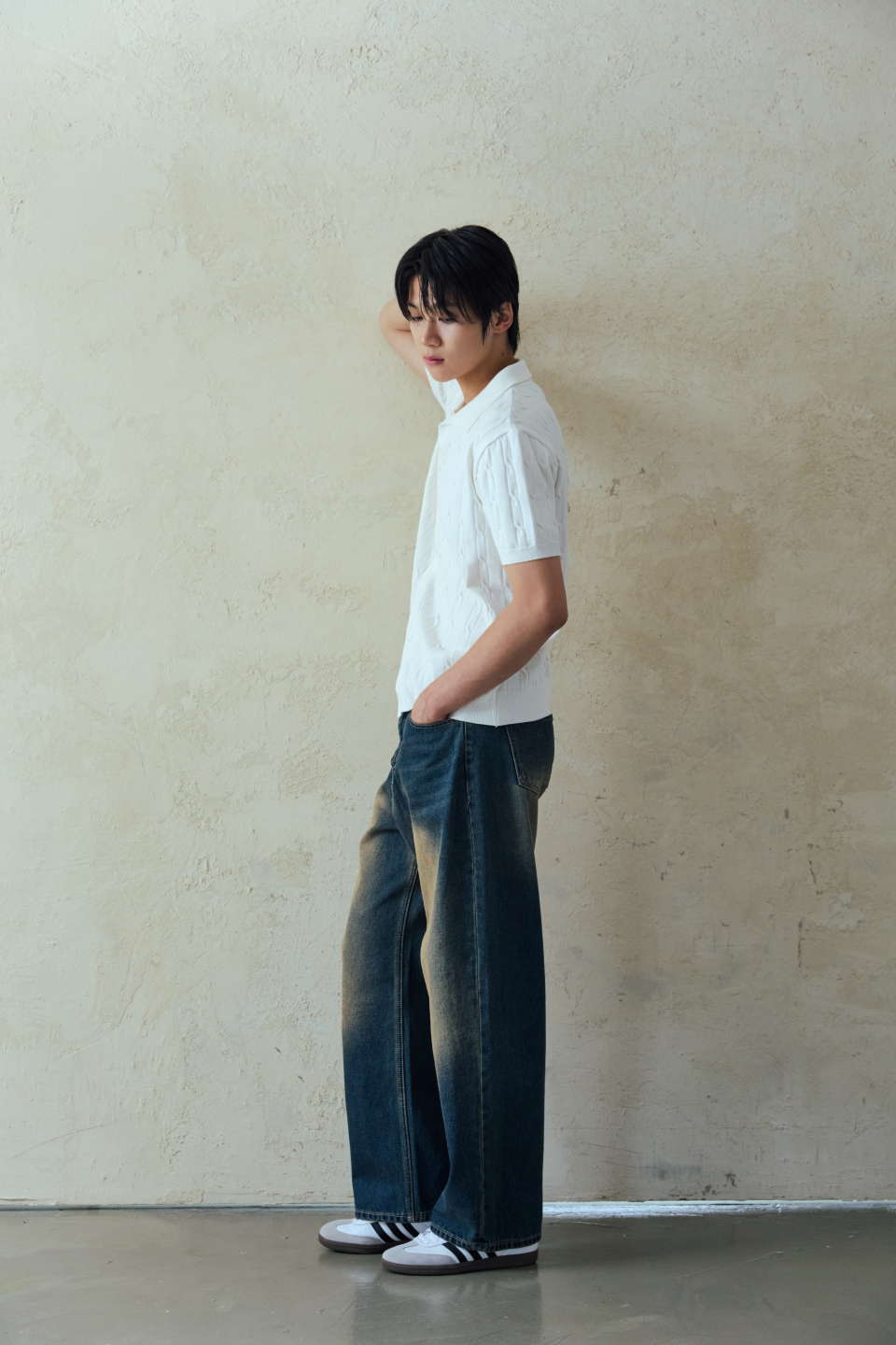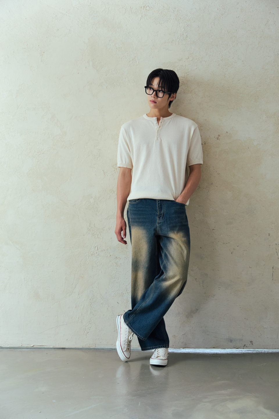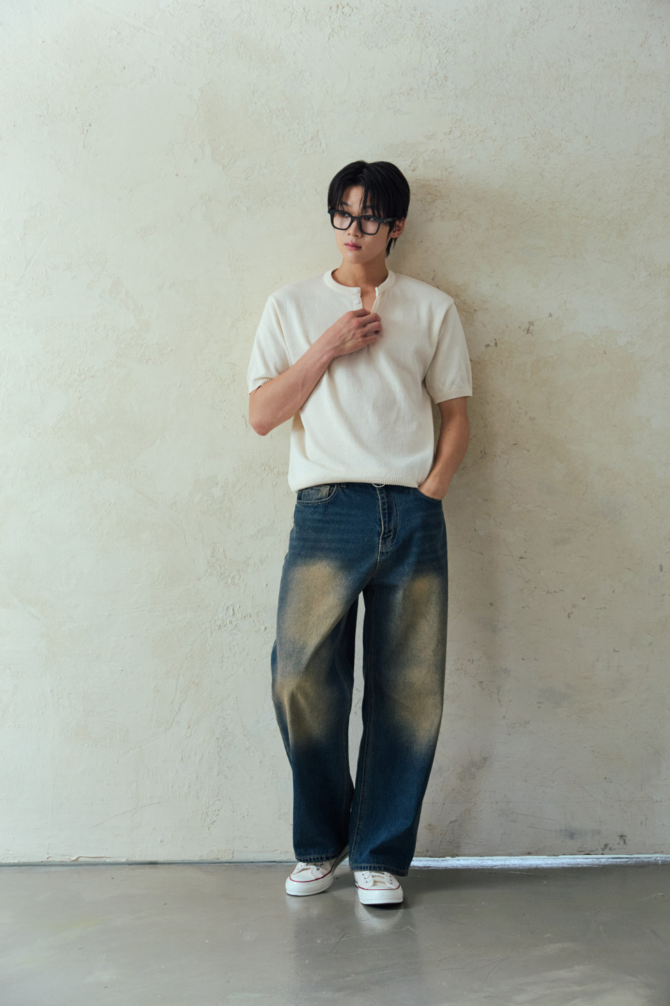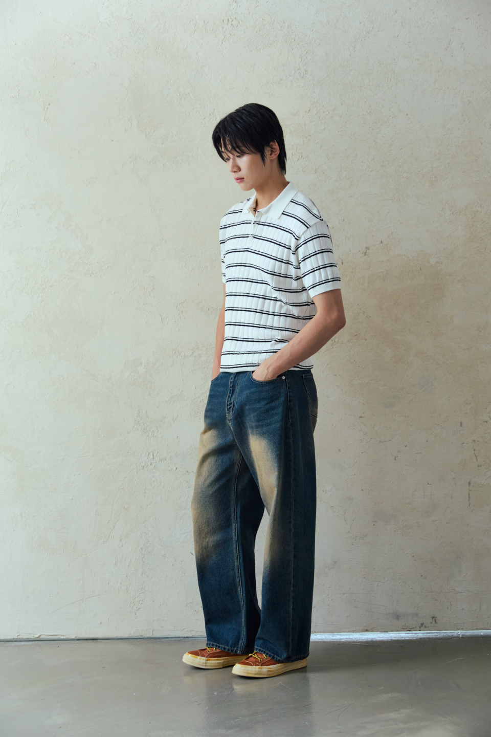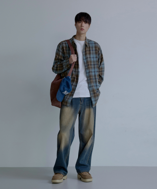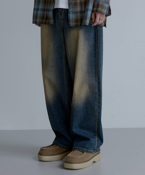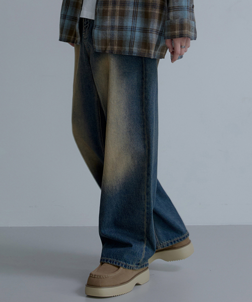 와이드 워싱 데님 팬츠 [딥블루]