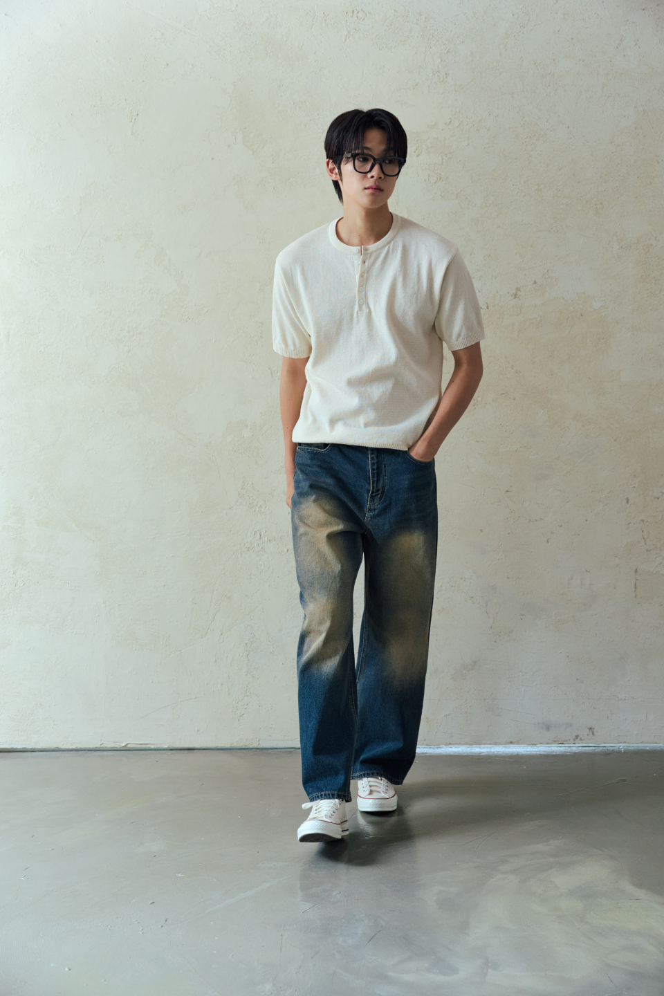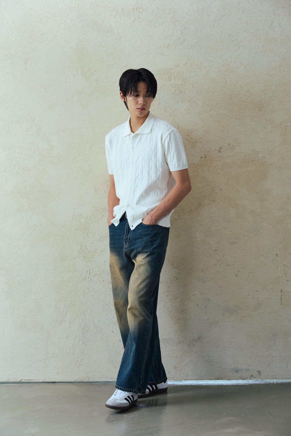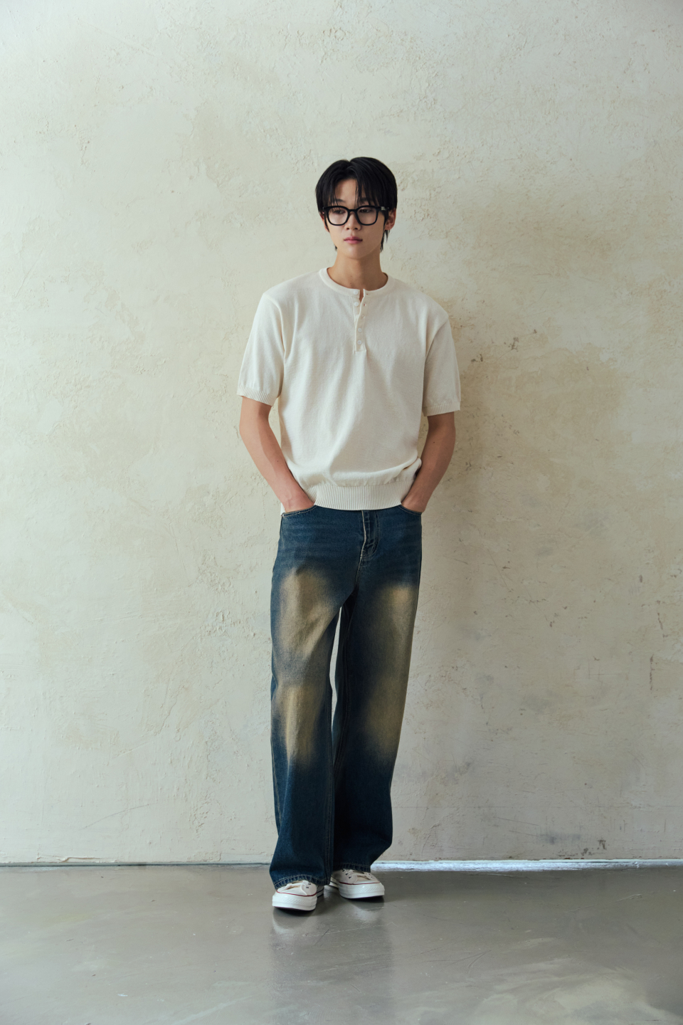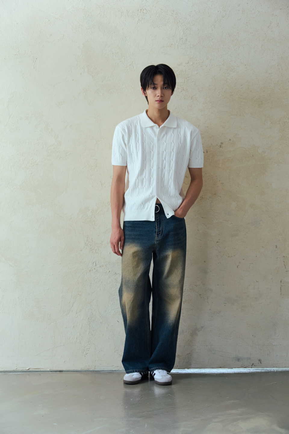 와이드 워싱 데님 팬츠 [딥블루]