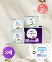 유기농 생리대 소/중/대/오버나이트 x 3팩 + 천연코튼라이너 무향 20p