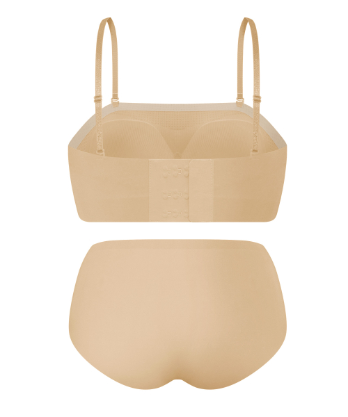 [SET] 논슬립 오프숄더 쉐딩 브라 팬티 세트 - 스킨