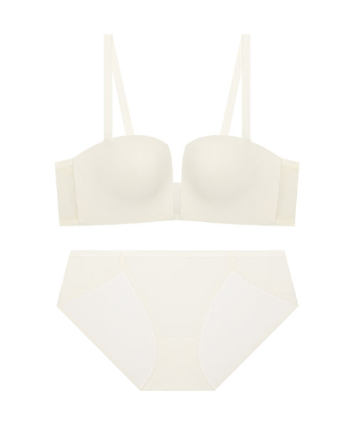 스퀘어 반컵 볼륨 브라 팬티 세트 - 크림