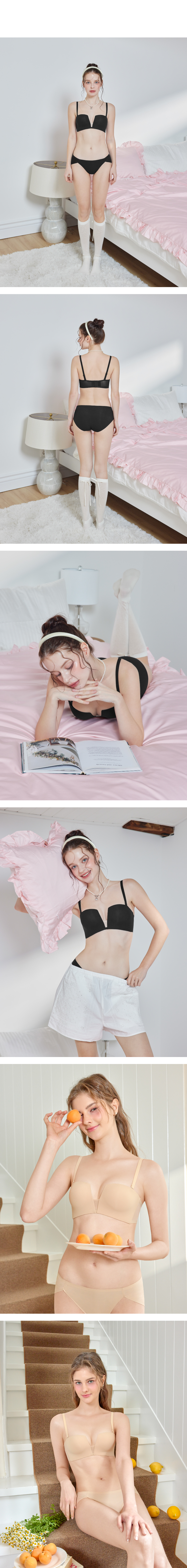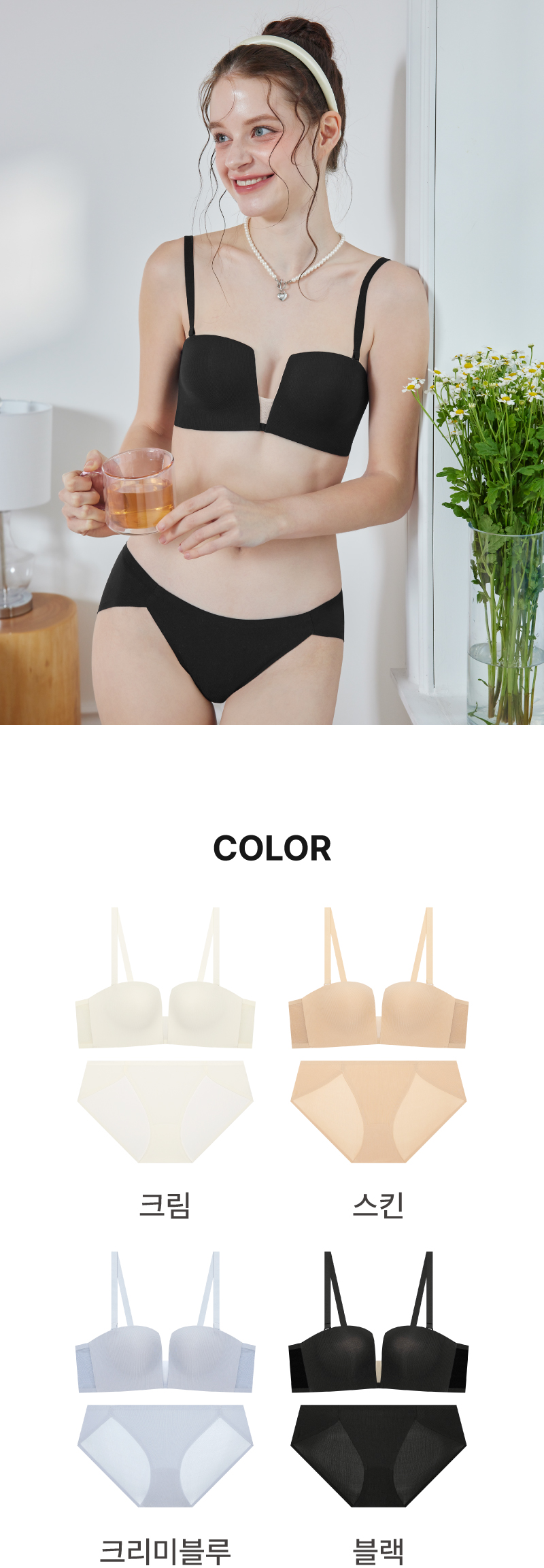 스퀘어 반컵 볼륨 브라 팬티 세트 - 스킨