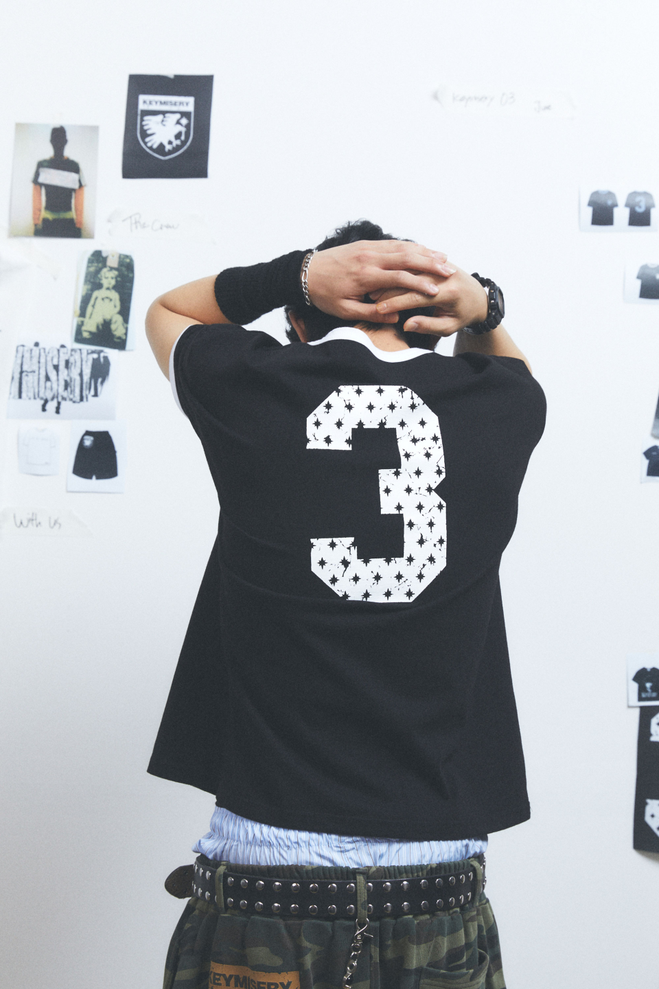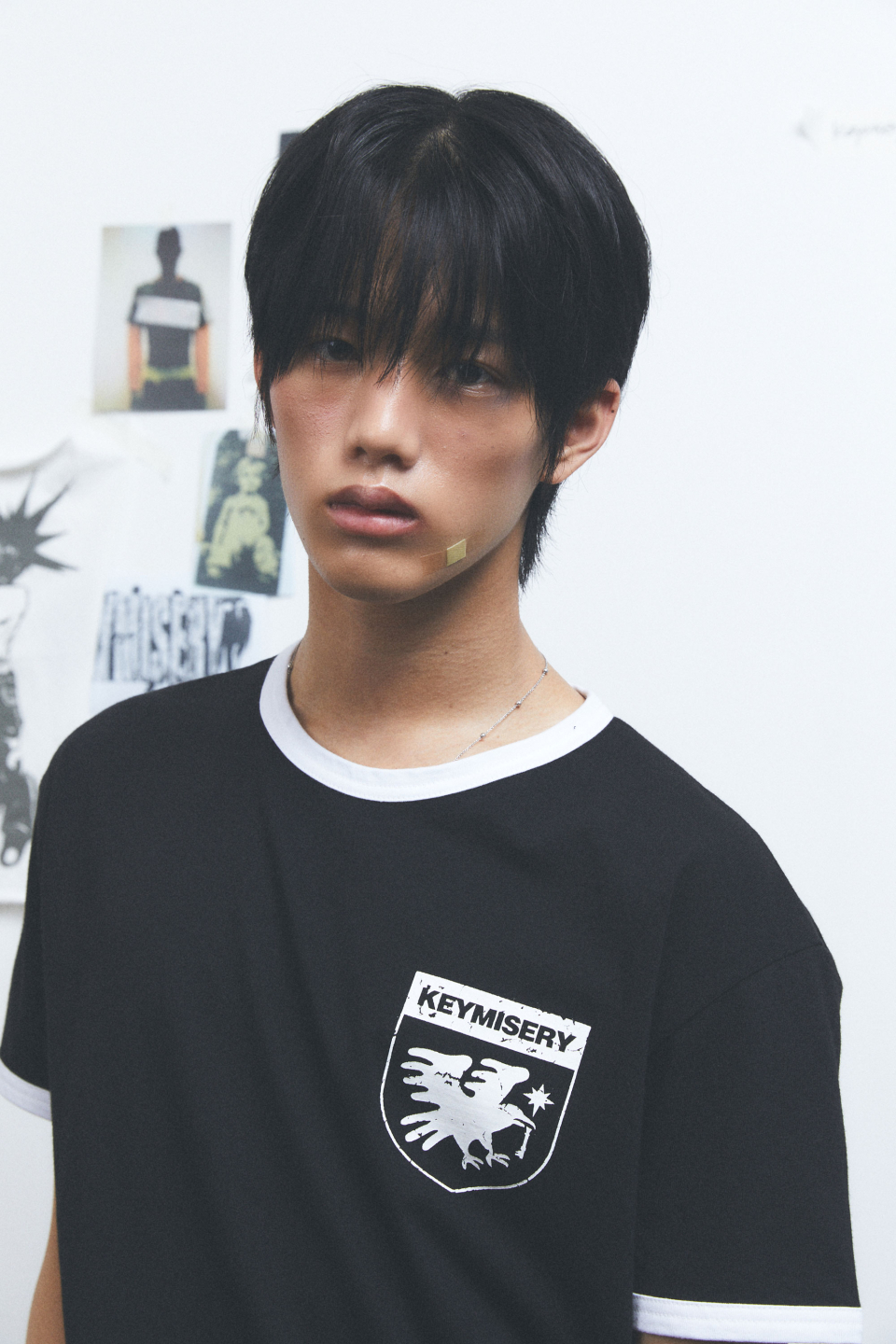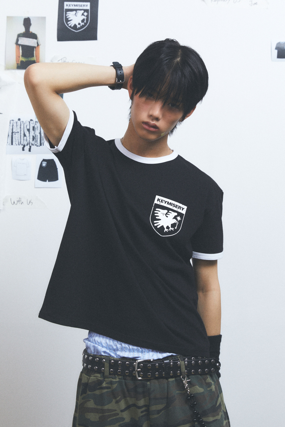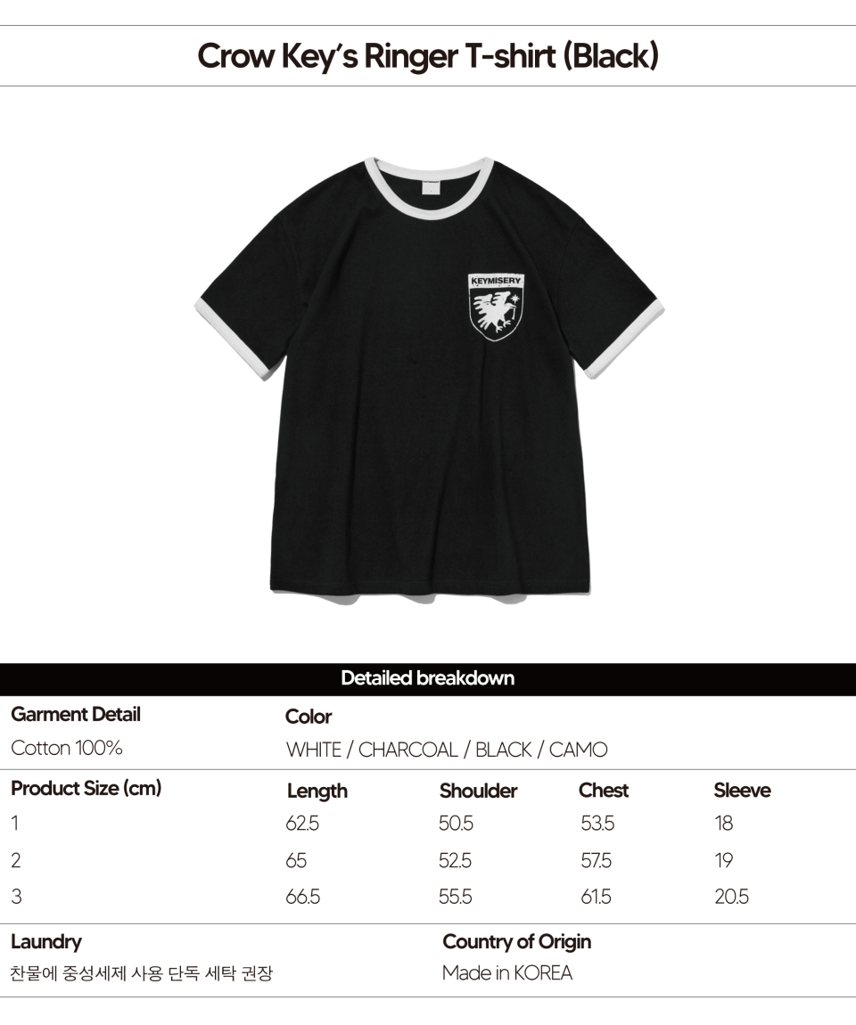 크로우 키스 크롭 링거 티셔츠 (블랙)