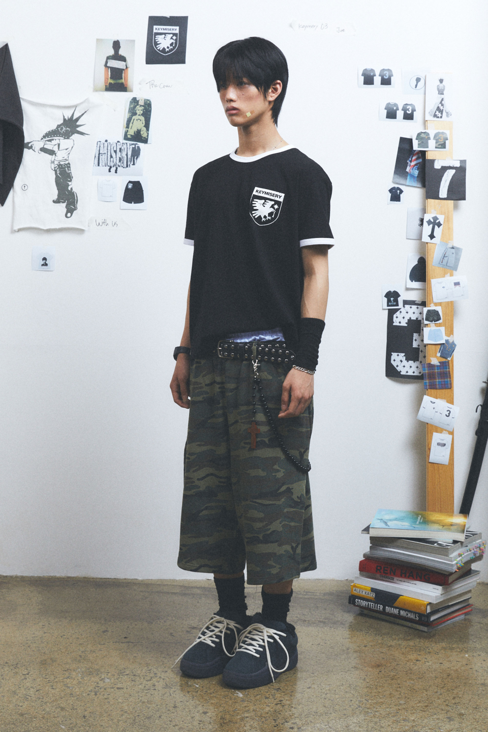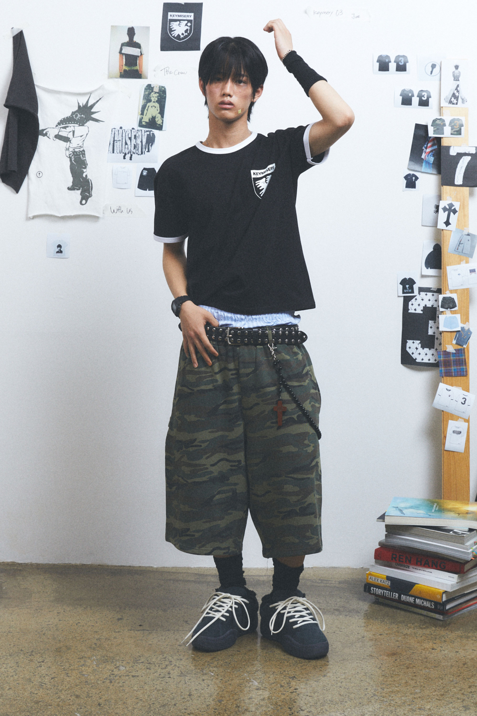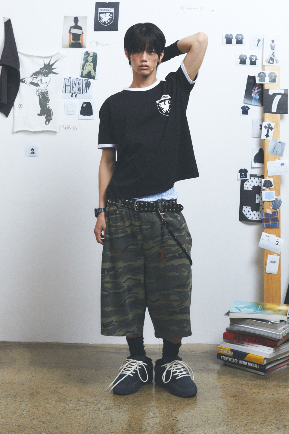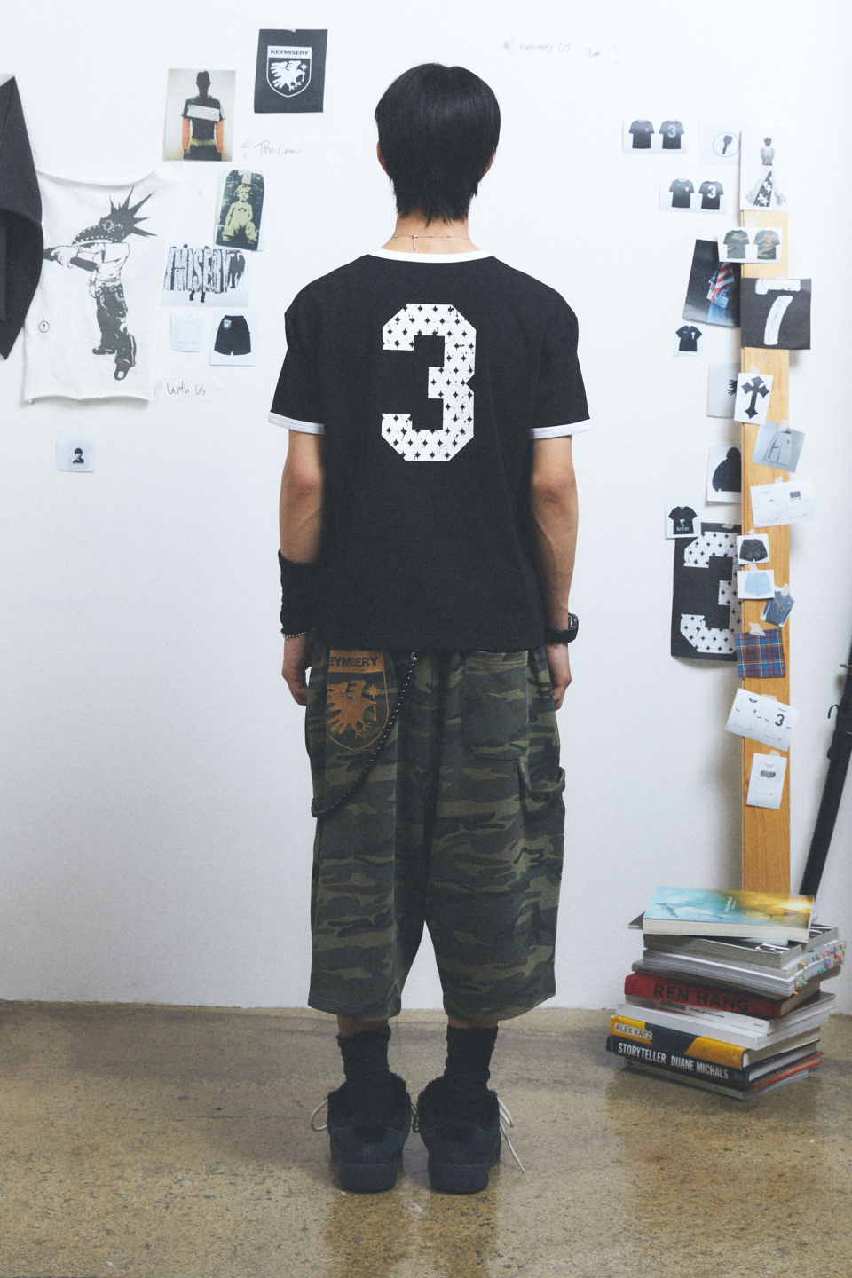 크로우 키스 크롭 링거 티셔츠 (블랙)