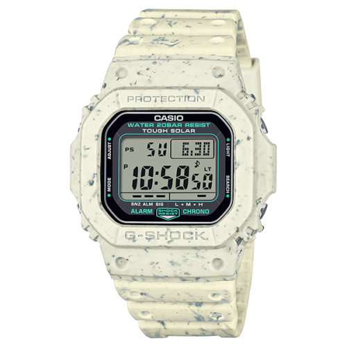 1983년 첫 선을 보인 이후, G-SHOCK은 강인함을 추구하며 끊임없이 진화해왔습니다. 이번에 선보이는 신모델은 제조 과정에서 발생한 재활용 레진 폐기물을 활용해 환경친화적인 테마를 담고 있습니다. 부품 생산 과정에서 생긴 레진 폐기물을 분쇄해, 베젤과 스트랩에 사용되는 소재에 통합했습니다. 베이지 컬러를 기본으로, 흰색과 올리브그린 색상의 재활용 레진이 혼합되어 제품마다 고유한 패턴을 만들어냅니다. 이 독특하고 컬러풀한 디자인은 일상적인 착용은 물론, 패셔너블한 스타일에도 잘 어울립니다. 기본 모델은 G-5600으로, 미세한 형광등 불빛에서도 전력을 생성하는 Tough Solar 기술이 탑재되어 있습니다. 재활용 레진으로 제작된 베젤과 스트랩은 G-SHOCK이 자연과의 더 나은 조화를 추구하며, 환경에 미치는 영향을 줄이기 위한 친환경적인 소재와 기능성의 결합을 보여주는 사례입니다. *재료의 특성상 각 제품의 색상 패턴은 다를 수 있습니다.