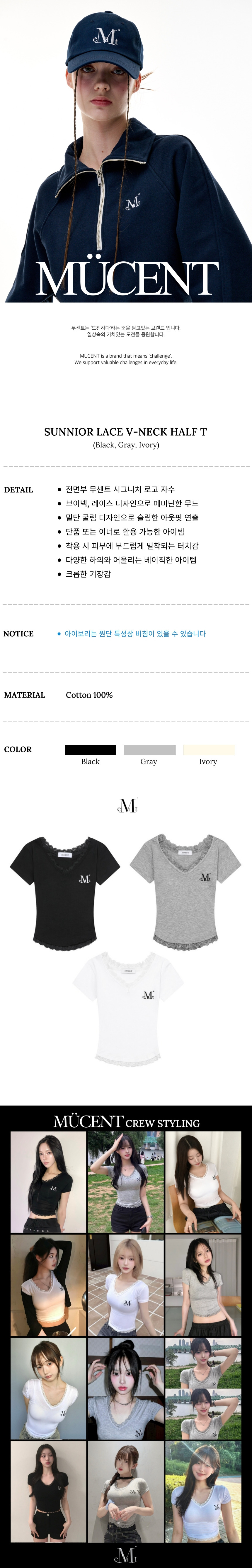 서니어 레이스 브이넥 반팔 티 (3컬러)