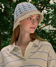 Ripple Point Multi Stripe Bucket Hat - Beige Multi