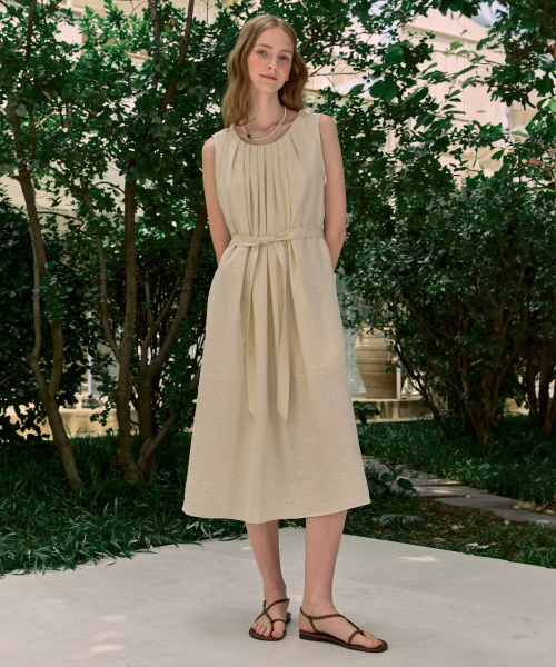Leah Neck Point Sleeveless Dress - Cream